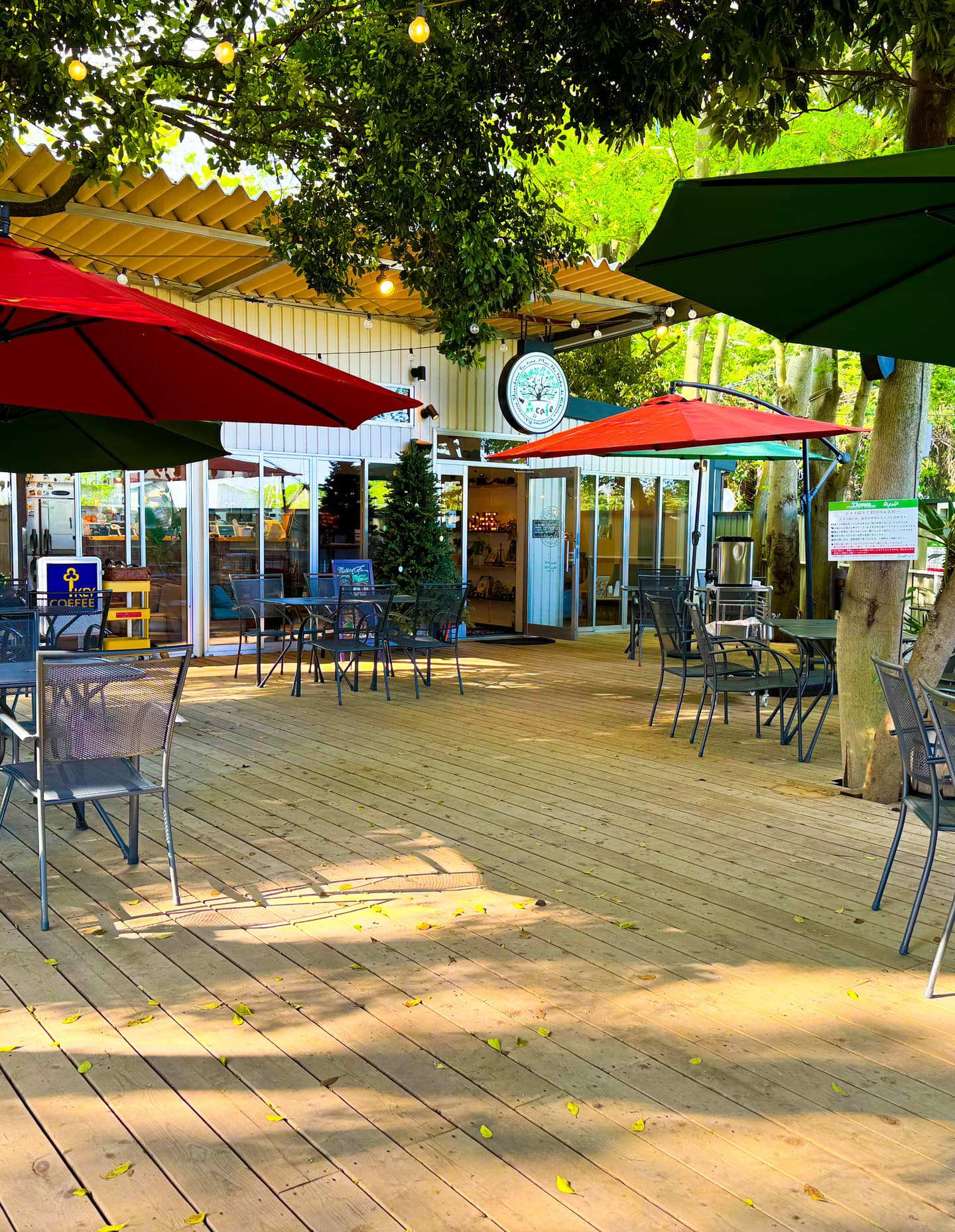 古くからあるモチの木の森を、そのまま残した優しい日陰に静かなティースペースをつくりました。一年を通して緑に囲まれた静かな空間です。
